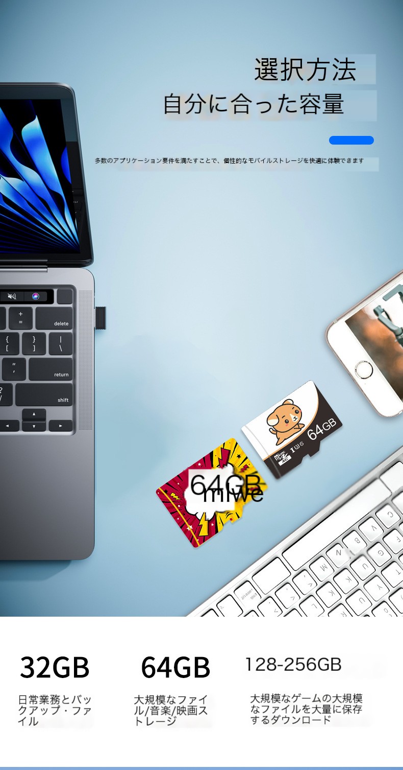 モデル名 MSDXC64 シリーズ フラッシュメモリタイプ Micro SDXCカード メモリストレージ容量 64 GB 対応デバイス ドローン, パソコン, Nintendo Switch, スマホ…